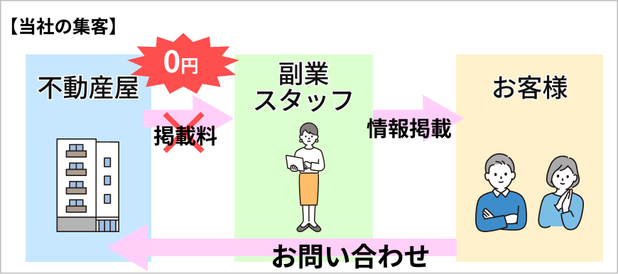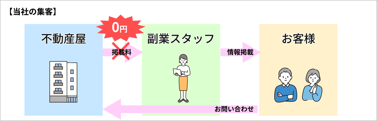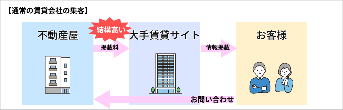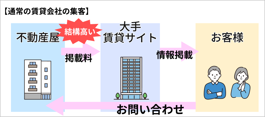 当社は大手賃貸サイトに広告を一切出していないので広告費がかかりません。
